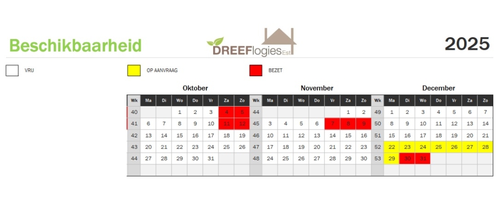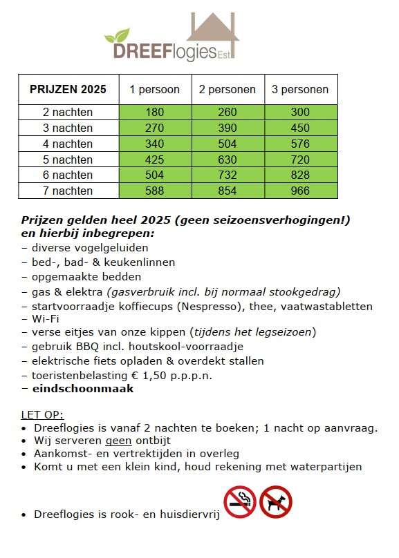 LET OP: Dreeflogies is het gehele jaar alleen vanaf 2 nachten te boeken; 1 nacht op aanvraag.