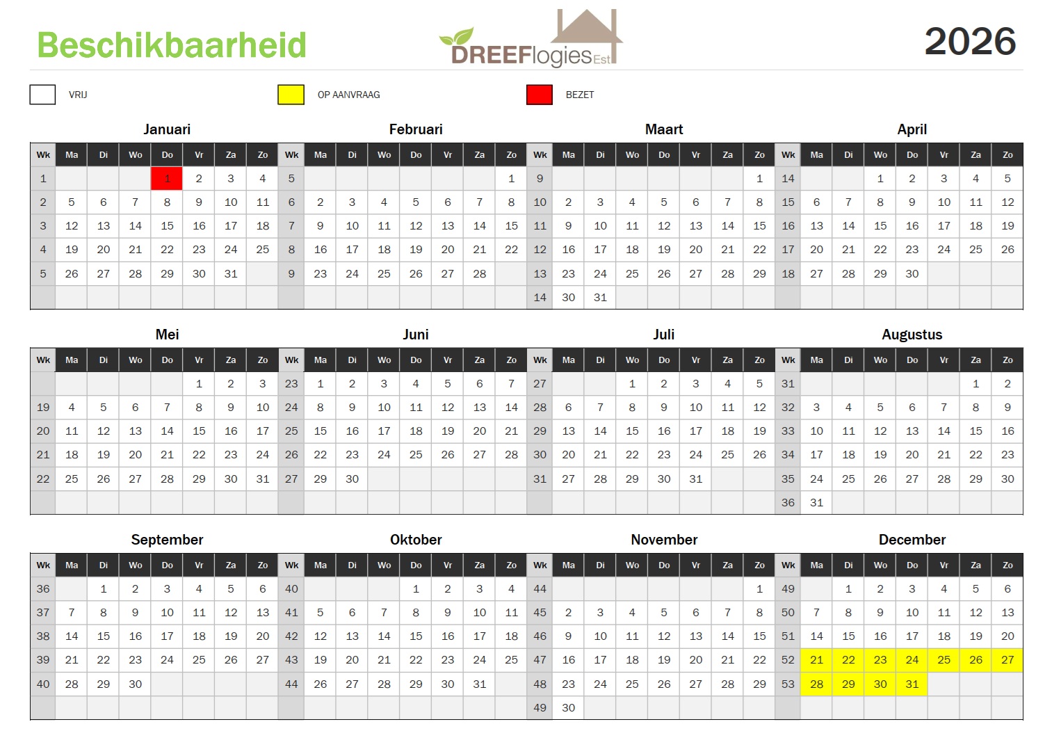 LET OP: Dreeflogies is het gehele jaar alleen vanaf 2 nachten te boeken; 1 nacht op aanvraag.